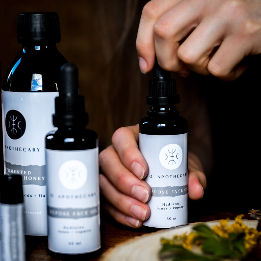 Apothecary, Face + Body products are bottled in Biophotonic, Violet Glass to preserve and prolong product life.